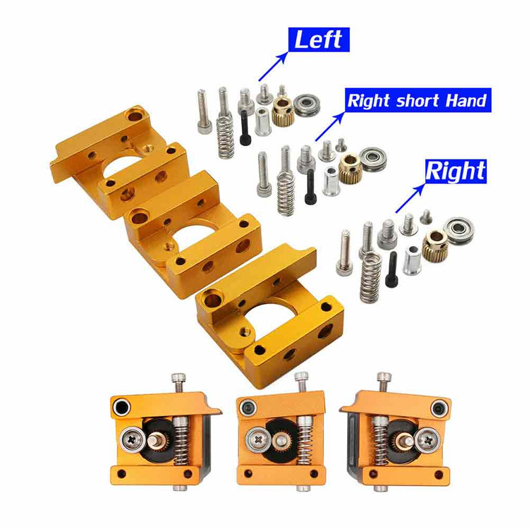 کیت اکسترودر در دو مدل چپ و راست عرضه میشود که عملا تفاوت خاصی ندارند و هر دو به راحتی برای پرینترها قابل تنظیم هستند و فقط در شرایطی که طراحی خاصی برای پرینتر و یا محدودیت فضا وجود داشته باشد از کیت با سمت مورد نظر می توان استفاده نمود