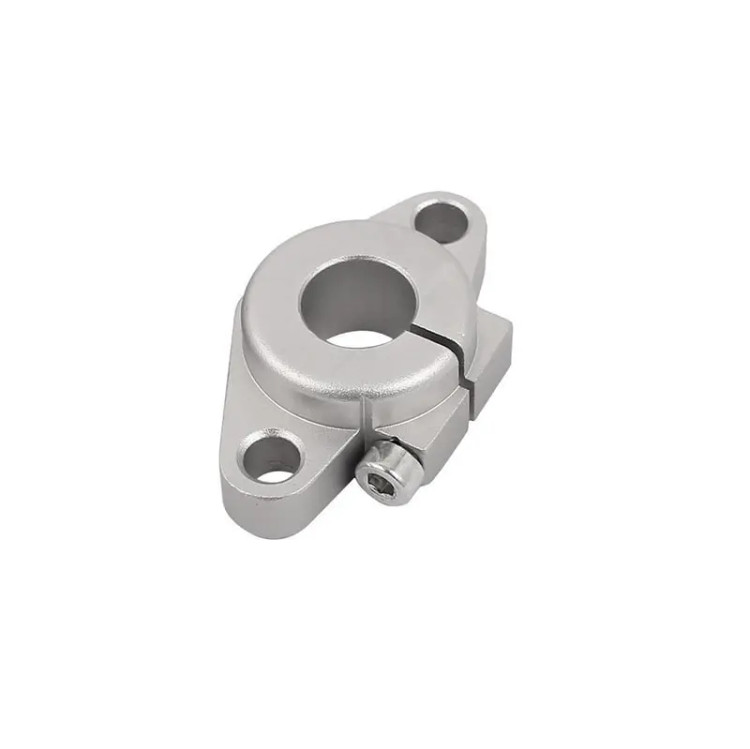 مشخصات محصول مدل: SHF12 جنس: آلومینیوم نوع و سایز پیچ مورد استفاده برای پایه: M5 نوع و سایز پیچ مورد استفاده برای کلمپ شفت: M4 نوع ساپورت شفت: SHF قطر شفت و متعلقات (میلیمتر): 12 ساپورت شفت SHF12 محصولی که ملاحظه می کنید ساپورت شفت SHF است. این محصول به ساپورت انتهای شفت یا End Shaft Support نیز معروف است. وظیفه ساپورت های شفت، نگه داشتن شفت در یک موقعیت خاص مورد نظر ما بوسیله نگه داشتن انتهای شفت است. روش نصب ساپورت شفت SHF مونتاژ ساپورت شفت SHF بسیار ساده است. این ساپورت در انتهای شفت قرار می گیرد. ساپورت با سفت کردن یک پیچ به شفت محکم می شود.سپس بصورت یک فلنج با دو پیچ به محل مورد نظر ما مونتاژ و ثابت می شود. تصویر زیر یک شفت نصب شده بوسیله ساپورت شفت را نشان می دهد که بر روی یک پروفیل آلومینیومی مونتاژ شده است. مزیت اصلی این طرح، قابل ریگلاژ بودن و قابلیت جابجایی شفت با توجه به شیار پروفیل است.
